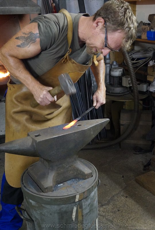 Willkommen beim SchmiedeglückMach eine Pause von der digitalen Welt und schmiede mit deinen eigenen Händen ein Unikat.Ein Messer aus 23 Lagen Damaststahl mit einer 1,5 mm breiten Schneidlage. deineIdeeInspirationen meine ErfahrungDer Schmied 3-5 PersonenTermine fertiges GlückImpressionen