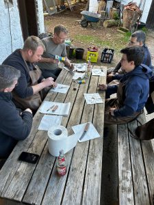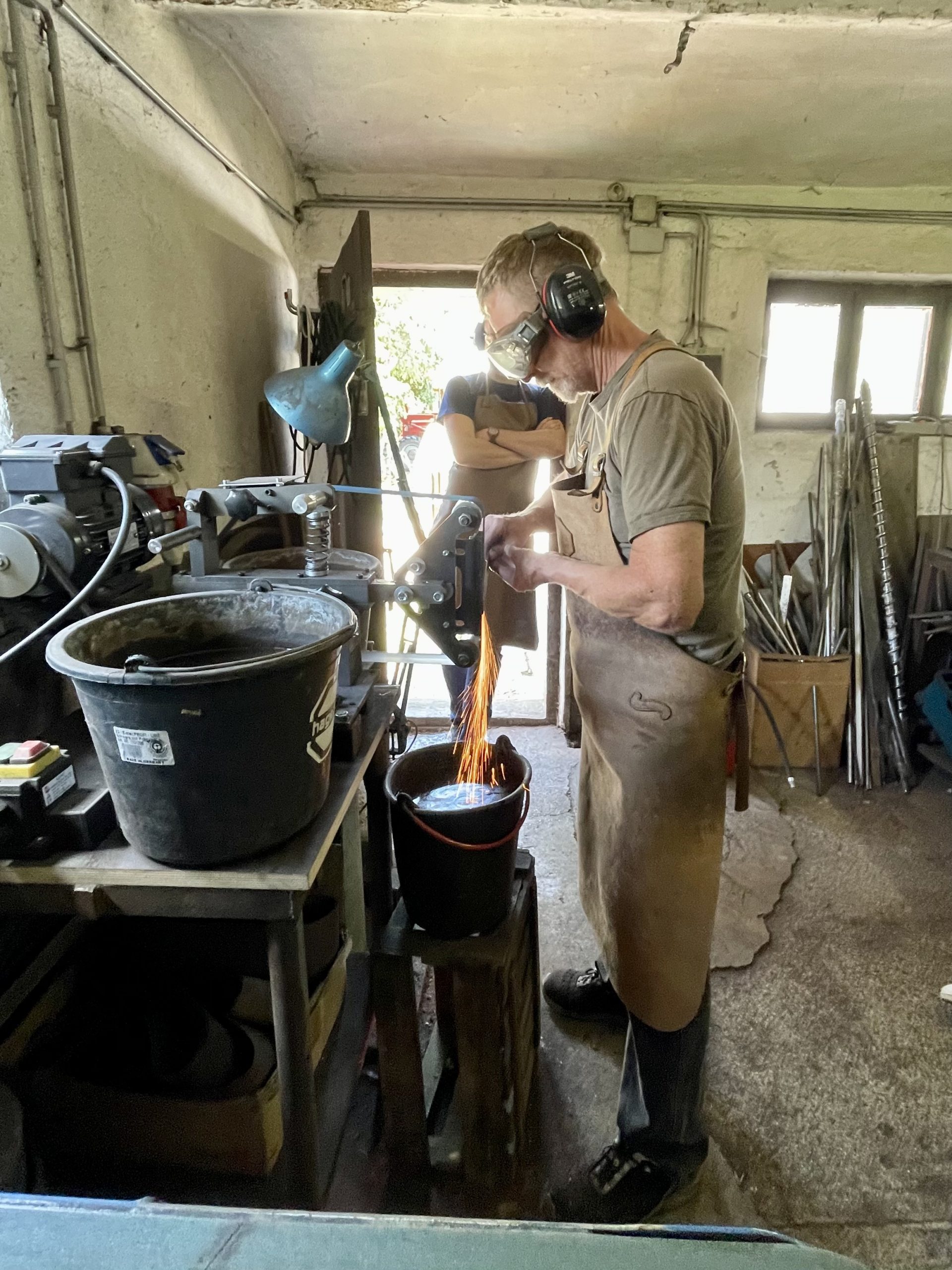 Schmiedeschürze, Schutzbrille, Handschuhe und Gehörschutz werden gestellt. Bitte bringe festes Schuhwerk und unempfindliche Kleidung mit. Da die Schmiede nicht beheizt ist und wir viel im Freien arbeiten, empfehle ich warme Kleidung bei kalter Witterung.
