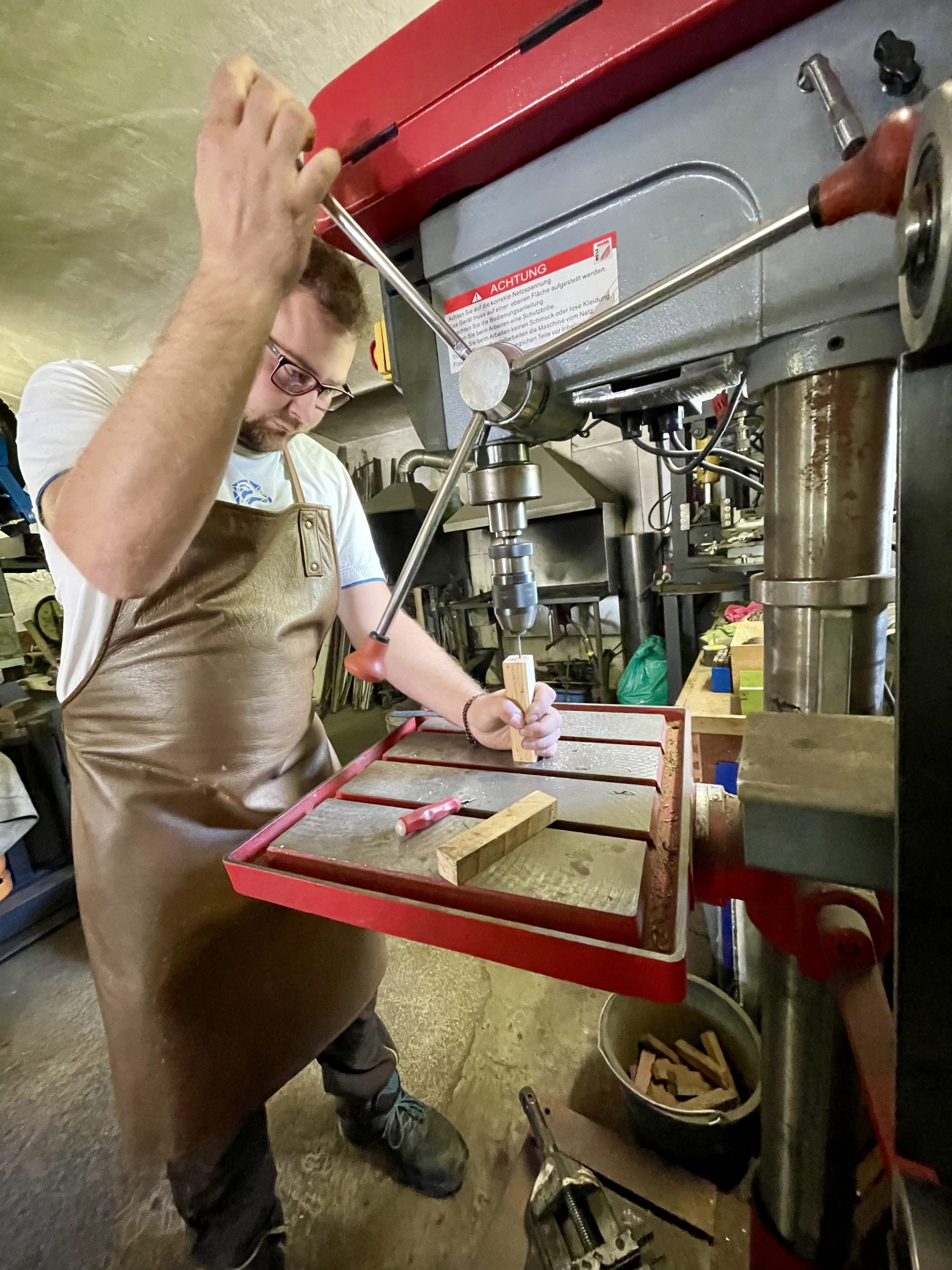 Mach eine Pause von der digitalen Welt und schmiede mit Deinen eigenen Händen ein Unikat. Erlebe die Kunst des Messerschmiedens und fertige ein Messer aus 23 Lagen Damaststahl mit einer 1,5 mm breiten Schneidlage.